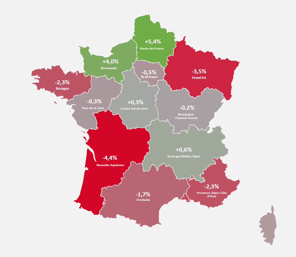 Les dynamiques territoriales restent hétérogènes. Le travail temporaire s’inscrit en hausse en Normandie (+4,0 %) et dans les Hauts-de-France (+5,4 %). Il reste le plus en retrait en Grand Est(-3,5 %) et en Nouvelle-Aquitaine (-4,4 %).